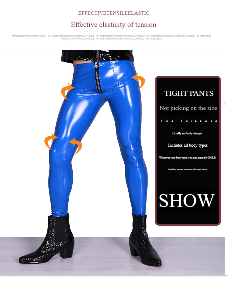 Style: Men's protruding crotch zipper leg hugging tight pants
